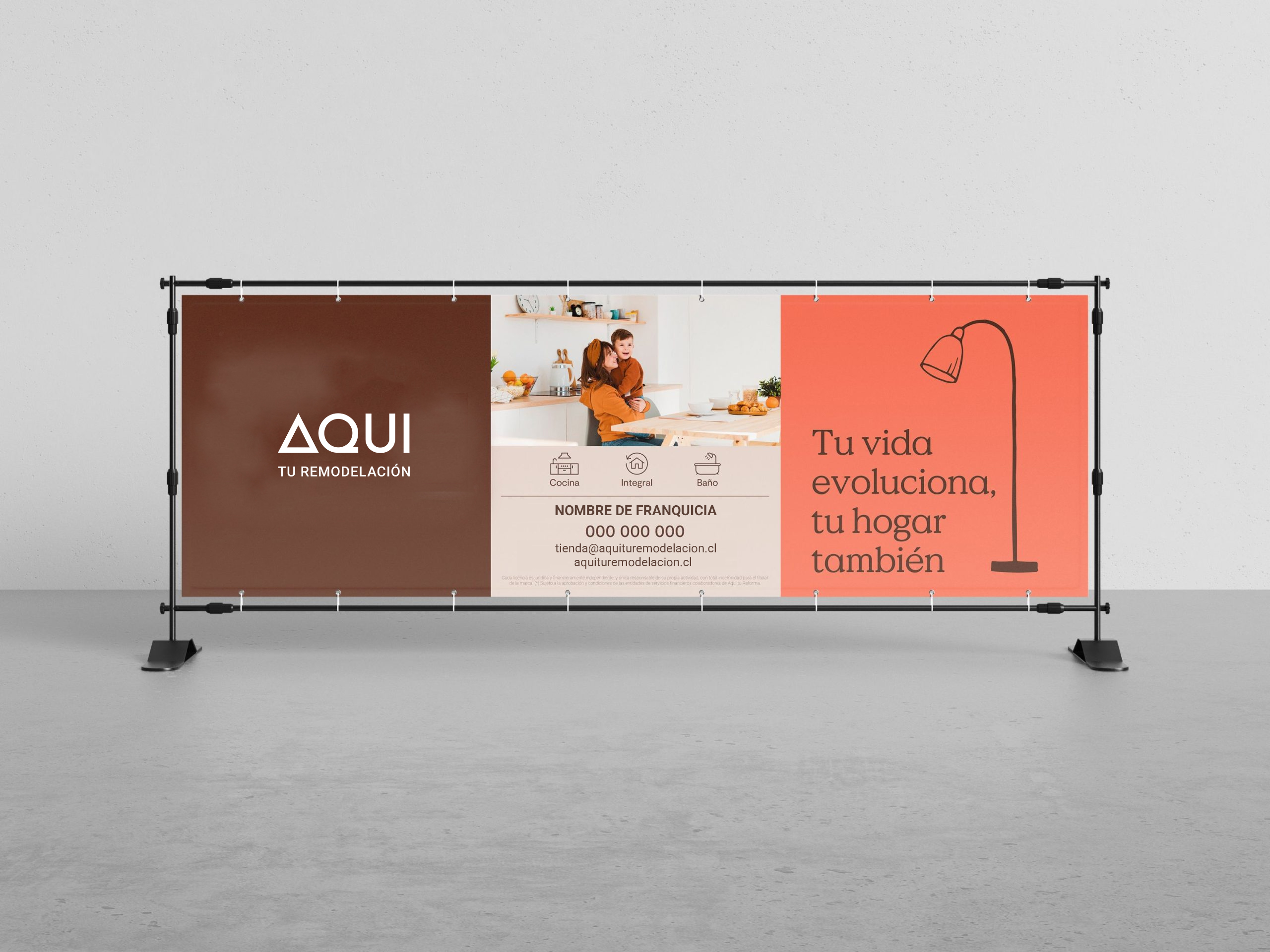 Lona corporativa para cubrir superficies en obras y dar visibilidad a la marca en el entorno de la remodelación. Se diseña a medida según tus necesidades.